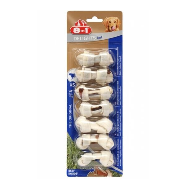 8in1 Beef Delight Bones XS Köpeğiniz hem iştahla yerken aynı zamanda da diş temizliğini gerçekleştirecektir.