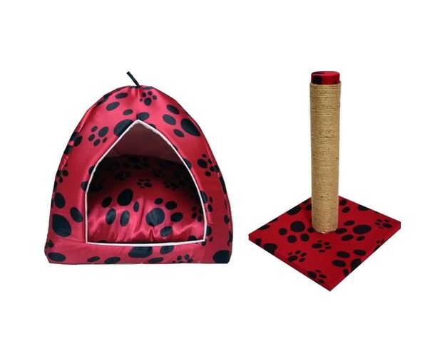 Biosand Eskimo Kedi Yatağı ve Tırmalama Seti Kırmızı Patili