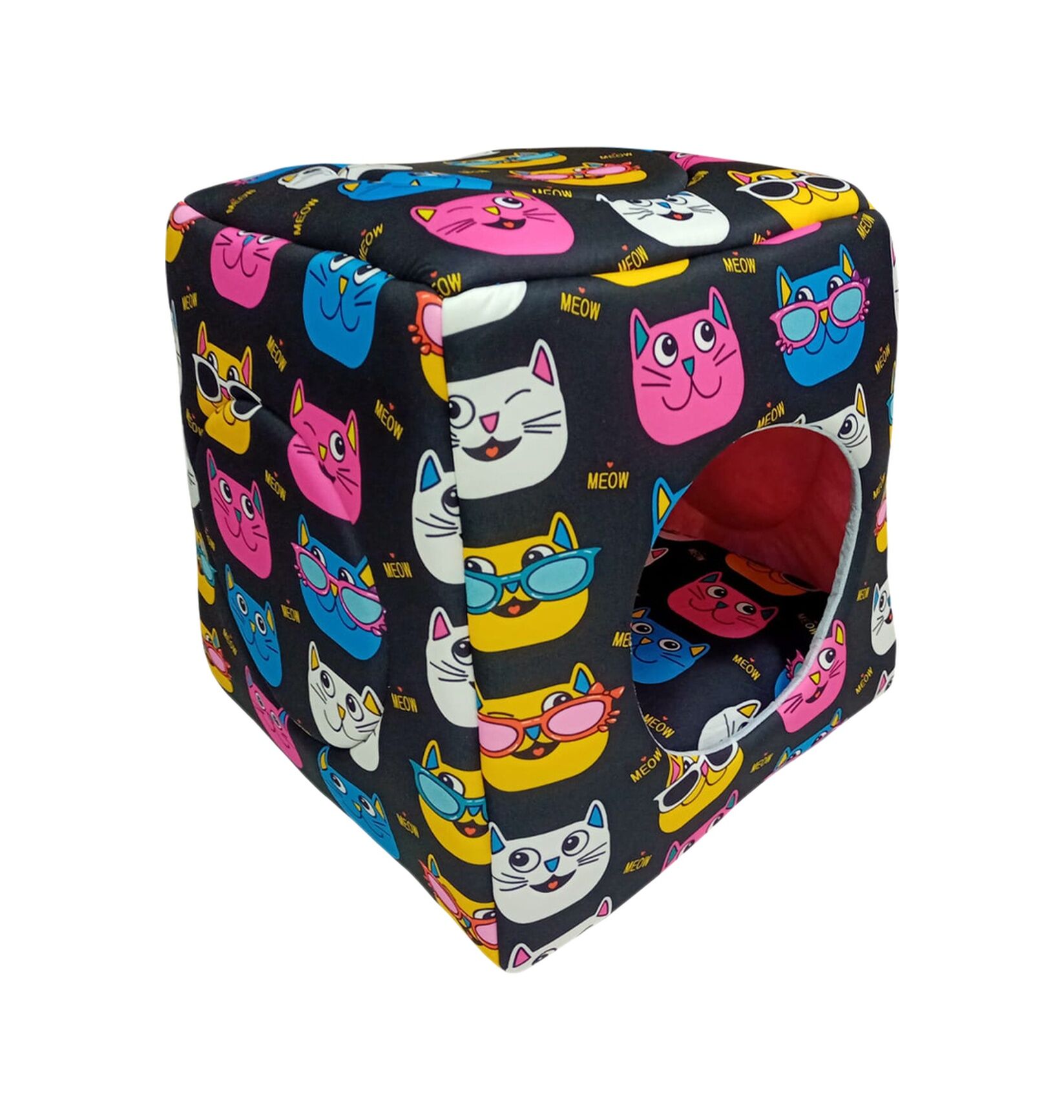 BioSand Kedi Desenli Üç Fonksiyonlu Kedi Yatağı Siyah