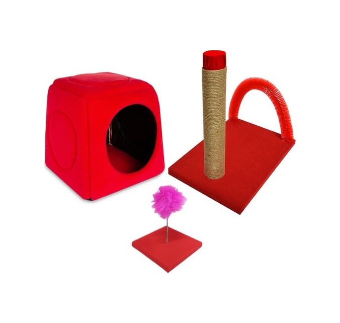 Biosand Kedi Yatağı - Kaşımalı Tırmalama - Hacıyatmaz Seti Kırmız