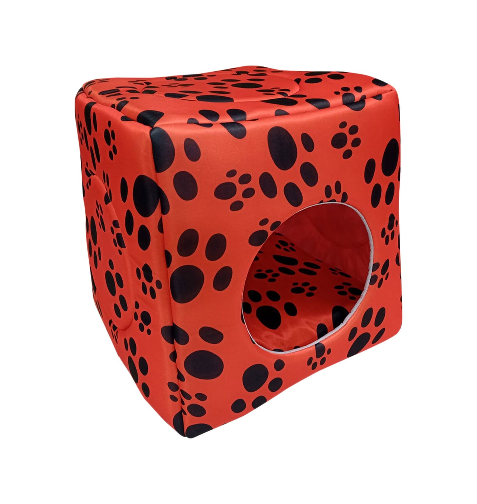 BioSand Pati Desenli Üç Fonksiyonlu Kedi Yatağı Kırmızı