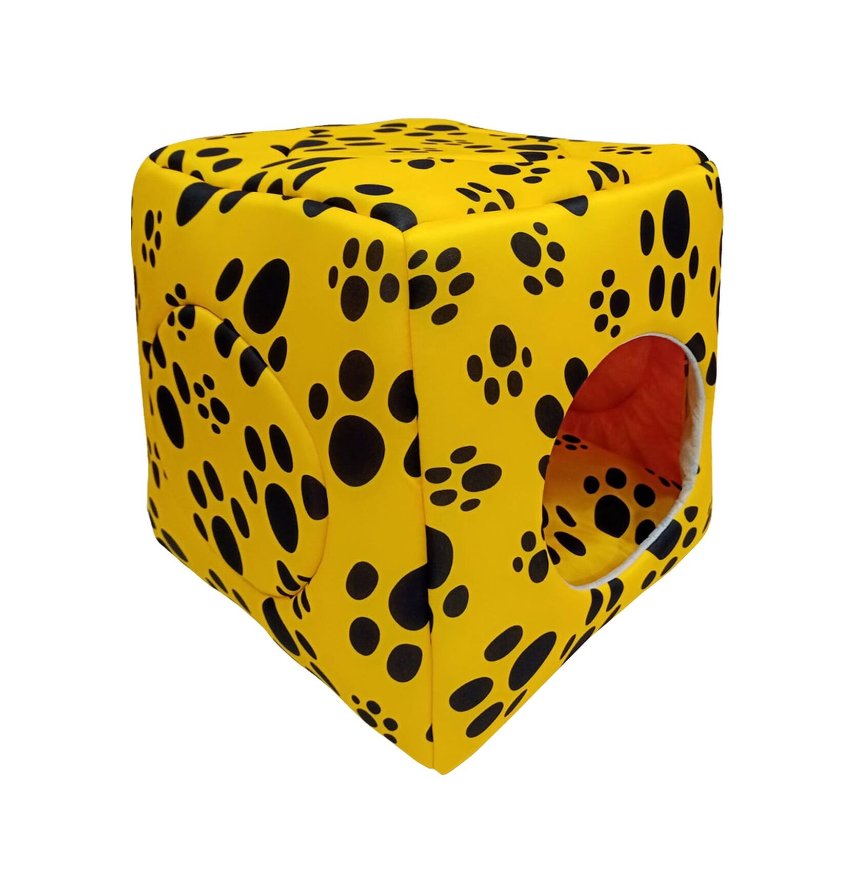 BioSand Pati Desenli Üç Fonksiyonlu Kedi Yatağı Sarı