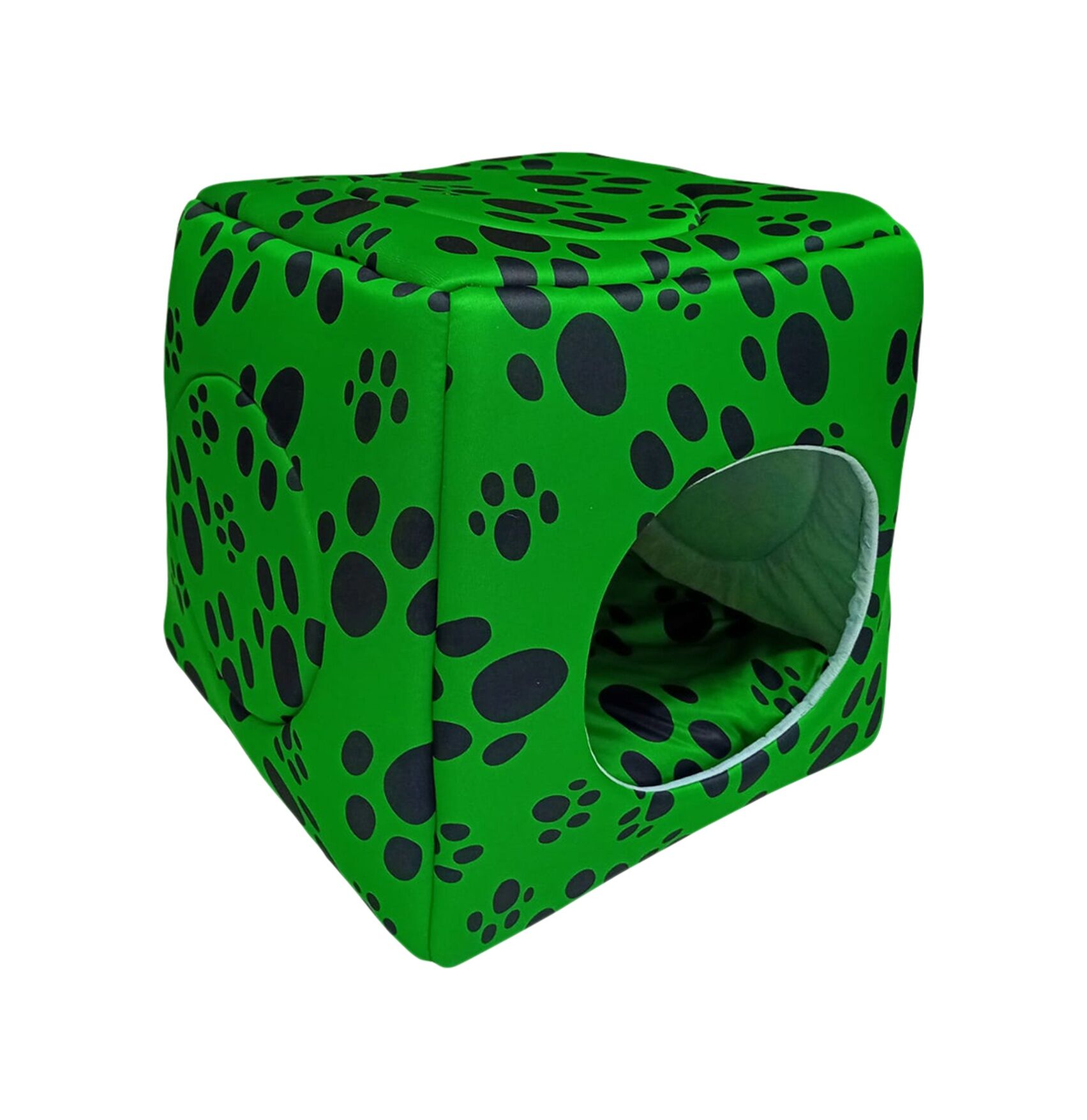 BioSand Pati Desenli Üç Fonksiyonlu Kedi Yatağı Yeşil