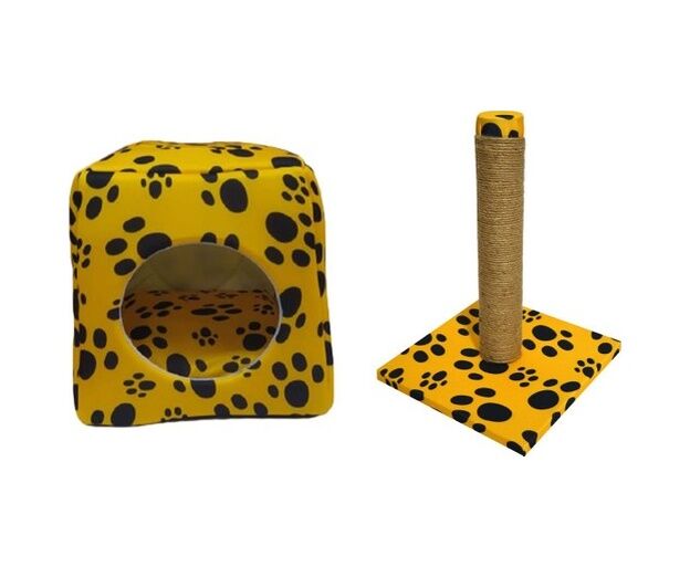 Biosand Üç Fonksiyonlu Kedi Yatağı ve Tırmalama Seti Sarı Patili