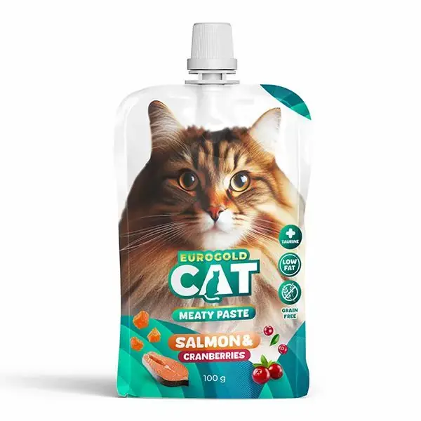 Eurogold Somon Balığı ve Kızılcık Ezme Kedi Ödülü, Somon balığının zengin Omega-3 içeriği ve kızılcığın antioksidan özellikleriyle dolu bu kombinasyon, kedinizin sağlığını desteklerken ona eşsiz bir lezzet şöleni yaşatır.