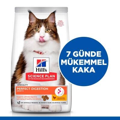 Hills Perfect Digestion Tavuk Etli Yetişkin Kedi Maması, 1 yaş ve üzeri yetişkin kediler için özel olarak formüle edilmiştir. ActivBiome+ teknolojisiyle geliştirilen bu mama, kedinizin sindirim sistemini düzenleyerek bağırsak mikrobiyomunu dengeler. Esmer pirinç, yulaf ve arpa gibi kaliteli içerikleriyle sindirimi kolaylaştırırken, sağlıklı dışkı oluşumuna ve genel vücut sağlığına katkı sağlar.
