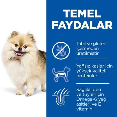 HILL'S SCIENCE PLAN Küçük köpeklerin bile sağlıklı bir iştahı olabilir ve tüm köpekler lezzetli yiyecekleri sever. Bu Hill's Science Plan Adult 1-6 No Grain Small & Mini with Tuna, küçük ve mini cins köpekler için mükemmeldir. Günlük beslenmeye uygun, lezzetli, dengeli bir kuru mamadır. Bu tahılsız Hill's Science Plan Yetişkin 1-6 Tahılsız Küçük ve Mini Ton balıklı kuru köpek maması ton balığı bakımından zengindir ve köpeğinize sağlıklı kasları korumak için gerekli olan yüksek kaliteli protein sunar. Bu tam besin, cilt ve tüy sağlığını desteklemeye yardımcı olan değerli bir omega-6 yağ asitleri ve E vitamini kaynağıdır. Hill's Science Plan Yetişkin 1-6 Tuna İçeren Tahılsız Küçük ve Mini, sindirimi kolay malzemeler kullanır ve küçük mideler ve çeneler için mükemmeldir.