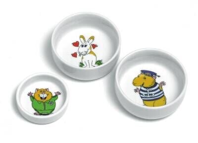 Gine pigler için, temizliği kolay, hayvan motifleriyle süslü seramik mama kabı. 300 ml. 11 cm çapında.