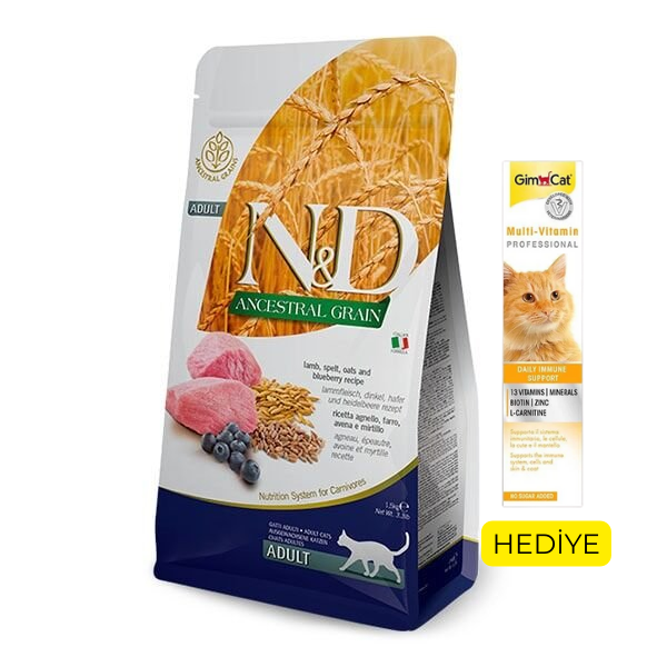 ND Düşük Tahıllı Kuzu Etli ve Yaban Mersinli Yetişkin Kedi Maması 1,5 Kg