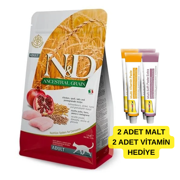 ND Düşük Tahıllı Tavuk Etli ve Narlı Yetişkin Kedi Maması 10 Kg