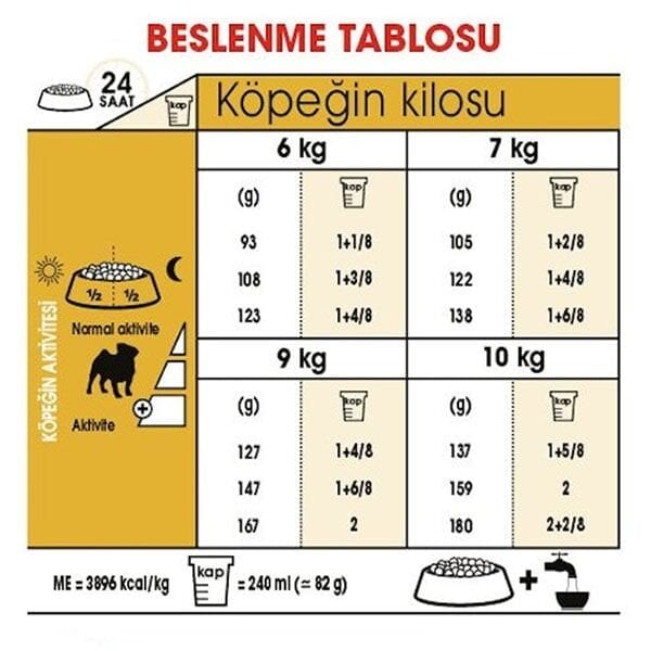 Royal Canin Pug Yetişkin, 10 aylıktan büyük yetişkin ve olgun pug cinsi köpeklere özel kuru mamadır. Özel formülü ile Pug cinsi dostunuzun uzun kürkünün sağlıklı kalmasına yardımcı olur. Bu formül dışkı kokusunun ve hacminin azaltılmasına yardımcı olur. Bu formül, özel aroma kombinasyonları sayesinde, en zor beğenen Pug ların bile iştahını açar.