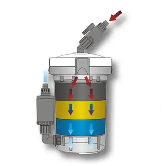 Filtre akvaryumun dışında akvaryumdan daha aşağıda kalacak şekilde yerleştirilerek kullanılır. Su giriş ve çıkış hortumları takılır. Hortumları akvaryuma yerleştirildikten sonra, prize takıldığı anda çalışmaya hazırdır.